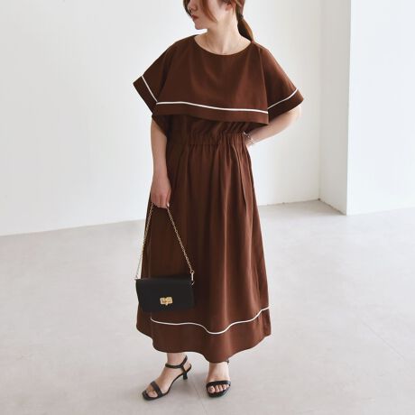 胸元と裾のパイピングもアクセントになり、洗練された印象をプラス。