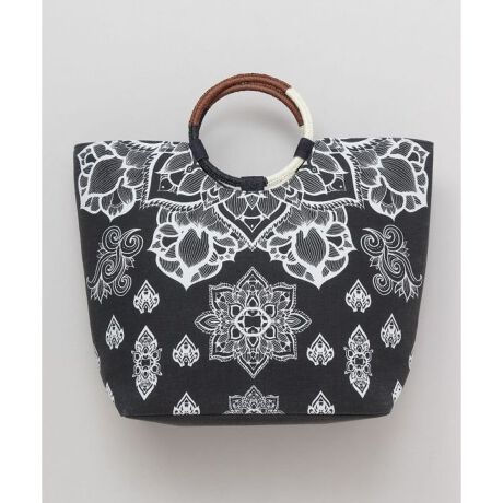 【Amina×VORRUK】大きな蓮が咲き誇る。タイのアーティストVORRRUKとのコラボアイテム。大きなリングハンドルとたっぷりサイズのマチで大容量なのが嬉しいポイント。開口部はマグネットボタン付なので、安心して持ち運べます。機能性とデザイン性を兼ね備えた万能バッグです。