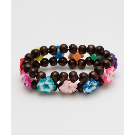 [型番:4HAZ5701-2025]ウッドビーズとカラフルなプルメリアがかわいらしいブレスレット。ハワイの雰囲気たっぷりです。