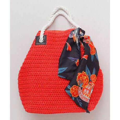 旅するカラベラ柄のスカーフがアクセントのペーパーバッグ。しっかりとした裏地、内ポケットとマグネットボタン付なので中身がこぼれる心配がなく、様々なシーンで大活躍間違いなし。開口部の留め具は付け外し可能で、形が変えられるのもポイントです。