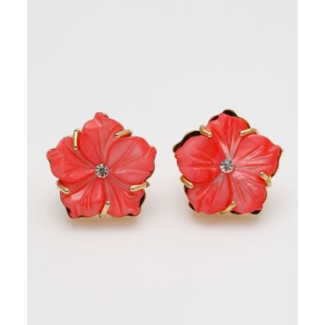[型番:4KXZ5671-2025]ハワイのハイビスカスをイメージしたピアス。鮮やかな色はハワイのお花を思わせます。中心に付いたラインストーンがポイントです。