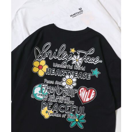 SMILEY FACE/スマイリーフェイス 吸水速乾/UVカット オーバーサイズ バックプリント ロゴ ワンポイント刺繍 半袖Tシャツ/レディース メンズ