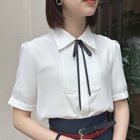 フロントのピンタックデザインと衿の形がクラシカルなシャツ。