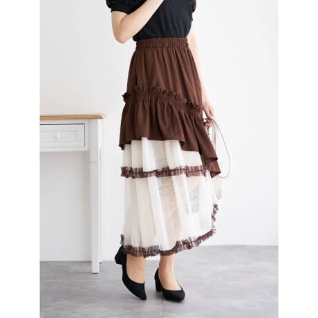 アシンメトリーな切り替えが動きのある表情を演出するスカート。