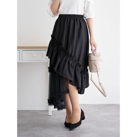 アシンメトリーな切り替えが動きのある表情を演出するスカート。