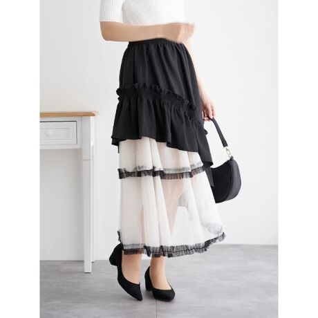 アシンメトリーな切り替えが動きのある表情を演出するスカート。