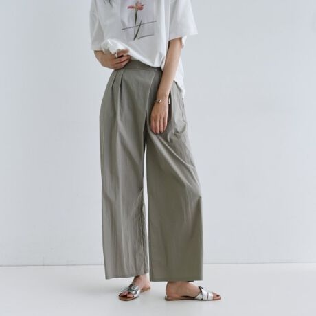 タイプライター素材を使用したパンツは、軽やかでさらっとした肌触りが魅力。