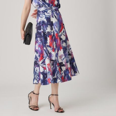 腰回りはすっきりさせ、フレアー分量を贅沢に入れる事で華やかさのあるスカートに仕上げています。