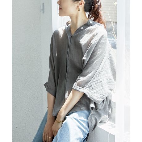 《WEB限定アイテム》バンドカラーガーゼブラウス
