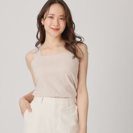 キラキラとしたホットフィットが目を惹くキャミソール。