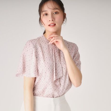 クードシャンスらしいドット風ジオメトリック柄のプリントブラウスです。