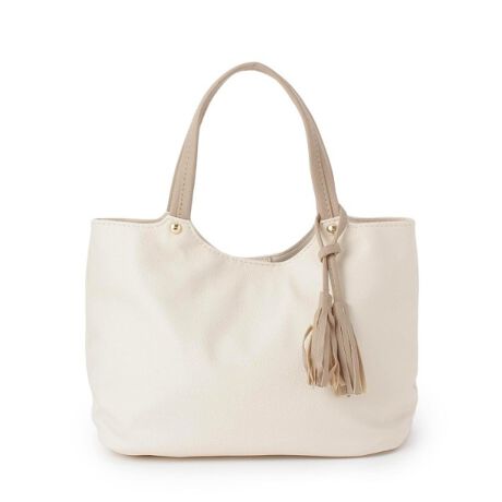 バイカラーのタッセルがポイントのミニサイズトート。