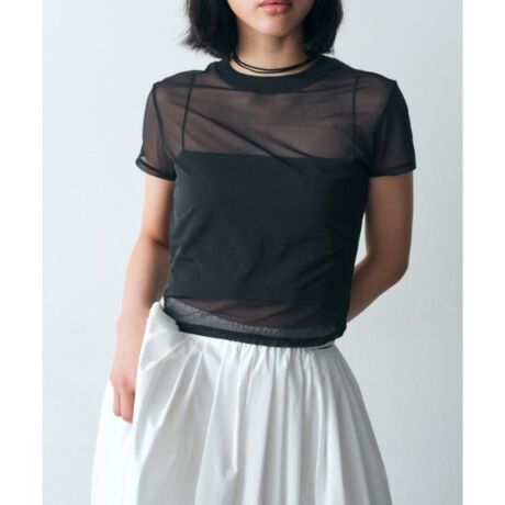 シリーズのメッシュキャミソールと合わせた着こなしもおすすめ。