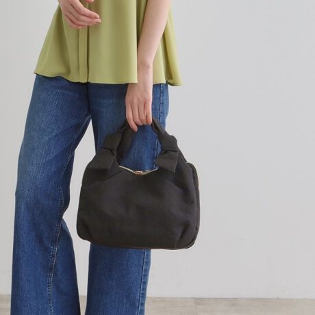 丸みのあるフォルムとハンドル根元のノットデザインがフェミニンなトートバッグ。