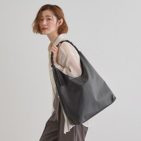 柔らかい合成皮革のたっぷり容量ワンショルダーバッグ。