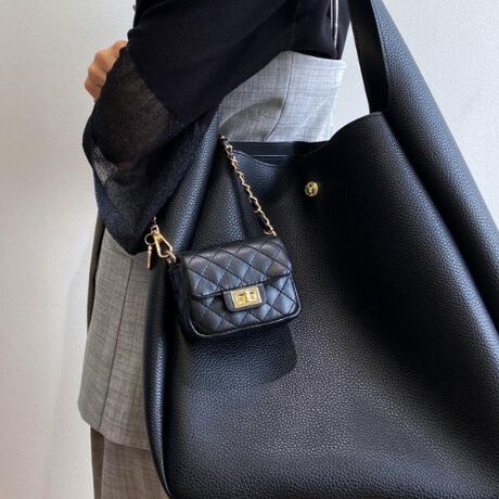 ・持ち手(ストラップ)部分はメタルチェーンに本体同色の合皮素材を通しており、高見えな印象