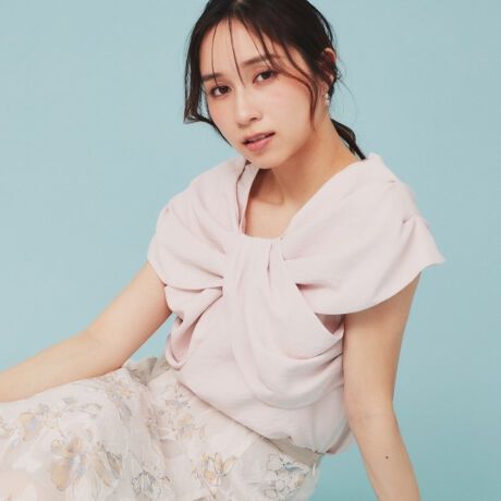 リボンのようなフェミニンで立体的なショールブラウス