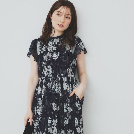 繊細なフローラル柄が上品なマジョリカフレアワンピース