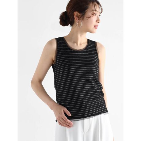 シルバーのボーダーラメがさりげなく輝くタンクトップ。