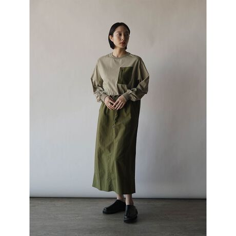 ウエストにはドロストがついているので、お好みに合わせたシルエットでご着用いただけます。