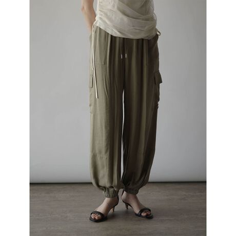 ウエストと裾口が総ゴムになっているため、リラクシーな履き心地。