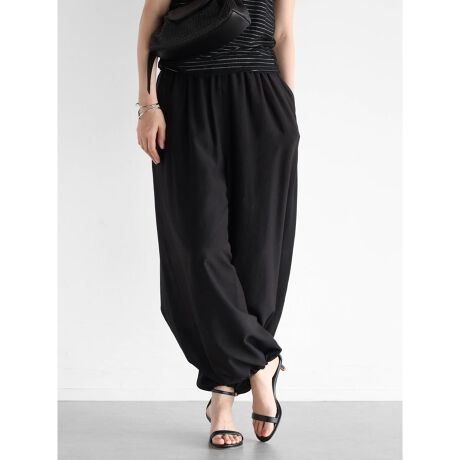 ウエストゴム仕様で内側に紐が付いているイージーパンツで、大人リラックス感のある一着。