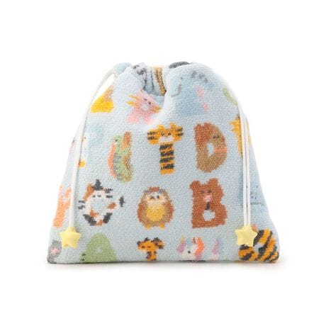 アルファベットをかたどった様々な動物たちが描かれた、楽しい柄『エービーシーズー』の巾着です。ドローコードの先端には、星型のパーツをあしらいました。内側がメッシュ生地になっているため通気性がよく、ハンドウォッシュ可能なのがポイント。お子様のおむつや、おもちゃなどを入れていただくのもおすすめです。