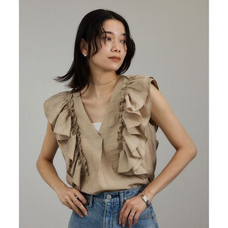 贅沢なダブルフリルがポイントのノースリーブブラウスです。