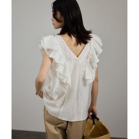 贅沢なダブルフリルがポイントのノースリーブブラウスです。