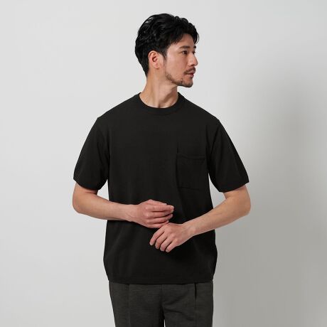 【WEB限定 WARDROBE SMART】マシーンウォッシュ 1ポケット ニット Tシャツ【抗菌・