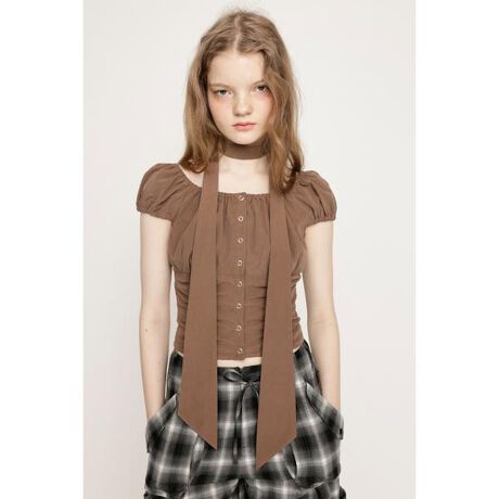 FRONT BUTTON GATHER TIE トップス