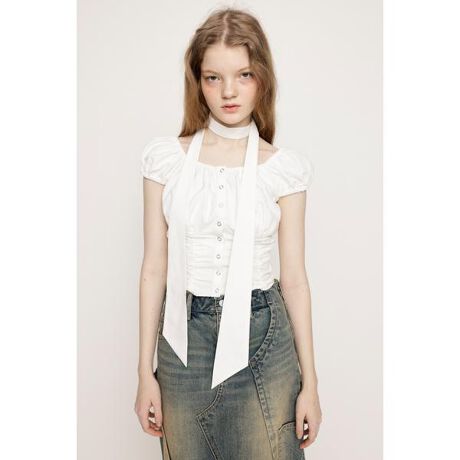 FRONT BUTTON GATHER TIE トップス