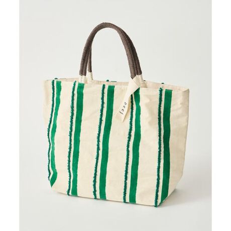 薄手のキャンバスに立体感のあるループ刺繍と同色のフロッキープリントが施されたストライプバッグ大きいサイズなのでPCを入れたり海や公園、近場の旅行にもぴったりです。サイズ:H33×W50×D17cm<beej(ビージ)>日本発バッグブランド。バッグブランド<Lilas Campbell(リラキャンベル)>を立ち上げたデザイナーが、大人に向けたブランドとして新たにスタートしました。ヒンドゥー語で <種> を意味するbeej(ビージ)。種から芽吹き花が咲き葉が茂るように、インドの生産者の皆さんが丁寧につくるテキスタイルやハンドクラフトによって、感謝や笑顔を循環していきたいという想いがあります。