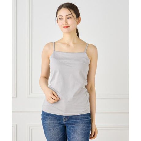 ■デザインしなやかで肌触りの良いスビン綿をMIXした天竺素材のキャミソール。コットン100%ながら毛羽の少ないクリアな表面感が特徴です。前襟ぐりはサテン素材で切り替えており、トップスからチラッと覗いてもツヤ感が上品な印象を与えます。襟ぐりをステッチレスで仕立てることでデコルテラインをスッキリきれいに見せてくれます。ウエストラインはゆるやかなカーブをつけ、身体にソフトになじみます。バックアジャズター付きで肩ひもの長さを調節できるのも嬉しいポイント。ボトムインしやすいやや長めの着丈です。合わせやすいベーシック&ニュアンスカラーを中心としたカラー展開で、何枚でも持っていたいアイテムです。■素材スビンMix天竺はA-GIRL'Sと開発した、スビン綿とDCH32を使用した素材です。長年の技術で編み機の特性を生かし、生地に合ったグレース加工をすることで、スビン綿のもつ上品な光沢とぬめり感と、しっとりと滑らかな風合いを生み出しています。・水洗い可・肩紐アジャスター調節可■サンプル撮影商品■こちらの商品はサンプルでの撮影となっております。実際の商品とは、サイズや色味、素材、デザイン等の仕様が若干変更になる場合がございます。