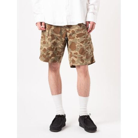 流行りのリラックスフィットのカーゴショートパンツ。迷彩柄で両サイドにポケットが付いたデザイン。綿100%ですがサラッとした履き心地。お気に入りのTシャツと合わせていただきたいアイテムです。