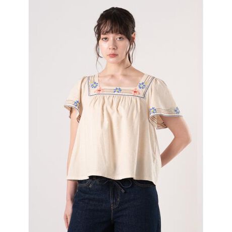 ふんわりとしたシルエットのホワイトカラーのブラウス。首元が規定に見えるカット、綿にレーヨンを配合しており、ドレープ感のある生地感で着心地も良好です。春先のスタリングのアクセントに重宝する一着です。