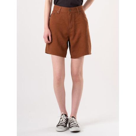 ハイウェスト、動きやすいゆったりとした太もも周りです。ブラウンカラーで太もも周りがスッキリ見えるマストハブのショートパンツです。
