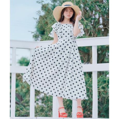 表情豊かな大きめドットのラッフルショルダーワンピース【Design】・存在感のあるドット柄がちょっぴりカジュアルなエッセンスをプラスしてくれるロングワンピース。・フェミニンなラッフルフリル&ラッフルショルダーが顔周りを華やかに魅せてくれます♪・高い位置のウエスト切り替えで脚長効果も◎・すっきりとした印象のスクエアネックで抜け感を演出。・オープンショルダー風のデザインで夏らしい肌見せを叶えます!・肩周りのフリルはゴム仕様になっているので伸縮性があります。・後ろはゴム&ファスナー仕様。・ウエストにリボンがあしらわれており、お好みのサイズに結んでいただくことでウエストサイズをご調整いただけます。【Fabric】・薄手で、独特な表面感が魅力のコットン生地を使用。・裏地付き。・ホワイト、ベージュの2色展開となります。【Care】ドライクリーニング