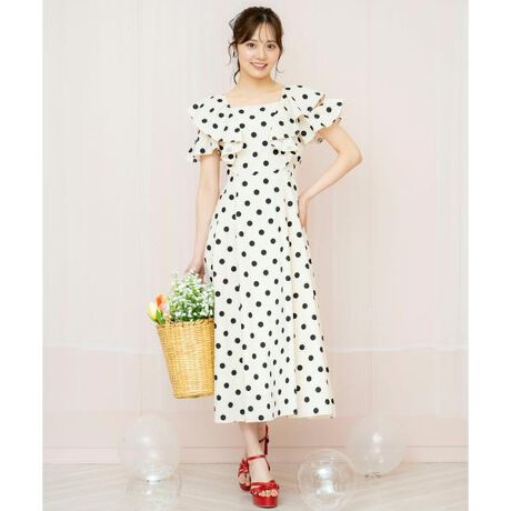 表情豊かな大きめドットのラッフルショルダーワンピース【Design】・存在感のあるドット柄がちょっぴりカジュアルなエッセンスをプラスしてくれるロングワンピース。・フェミニンなラッフルフリル&ラッフルショルダーが顔周りを華やかに魅せてくれます♪・高い位置のウエスト切り替えで脚長効果も◎・すっきりとした印象のスクエアネックで抜け感を演出。・オープンショルダー風のデザインで夏らしい肌見せを叶えます!・肩周りのフリルはゴム仕様になっているので伸縮性があります。・後ろはゴム&ファスナー仕様。・ウエストにリボンがあしらわれており、お好みのサイズに結んでいただくことでウエストサイズをご調整いただけます。【Fabric】・薄手で、独特な表面感が魅力のコットン生地を使用。・裏地付き。・ホワイト、ベージュの2色展開となります。【Care】ドライクリーニング