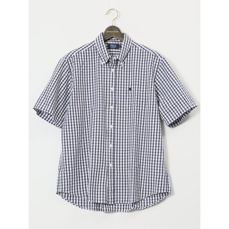【大きいサイズ】【マシンウォッシャブル】ポロ サッカーチェック ボタンダウン半袖シャツ