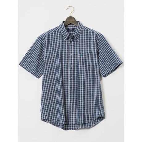 【大きいサイズ】【マシンウォッシャブル】ポロ サッカーチェック ボタンダウン半袖シャツ