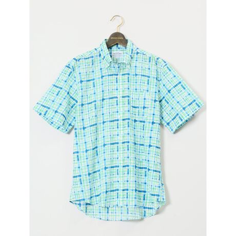 着映え度抜群、コーディネートの主役になるボタンダウンの半袖シャツです。にじませた様なチェックの総柄プリントがポイント。左胸ポケット付きで利便性にも優れています。