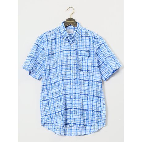 着映え度抜群、コーディネートの主役になるボタンダウンの半袖シャツです。にじませた様なチェックの総柄プリントがポイント。左胸ポケット付きで利便性にも優れています。