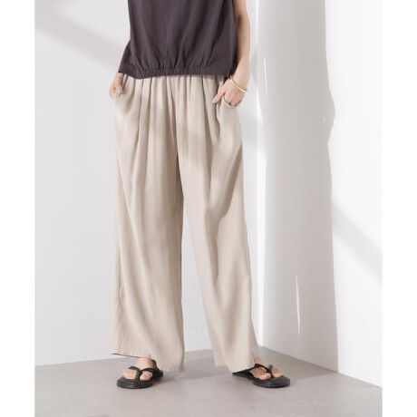 履き心地の良さと、リラックス感あるデザインが魅力的なイージーワイドパンツ。柔らかなレーヨン混の素材を使用しているので、ドレープ感が出てストンと落ちるシルエットがきれいめ印象に。シンプルなデザインでトップス次第でオンオフどちらにも着回せる万能アイテムです。