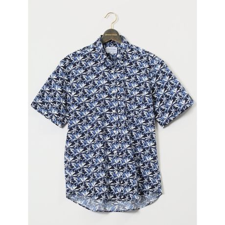 着映え度抜群、コーディネートの主役になるボタンダウンの半袖シャツです。夏らしいヤシの木の総柄プリントがポイント。左胸ポケット付きで利便性にも優れています。