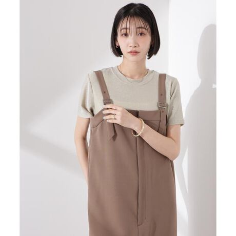 シーズンムードを盛り上げるラメ素材が映えるクルーネックTシャツ。伸縮性のある生地なので着心地が良く、デイリーコーディネートになじみやすい雰囲気がポイント◎。ジャケットやサロペットなどのインナーとしても重宝するから、シーズンレスで持っておきたいアイテムです。