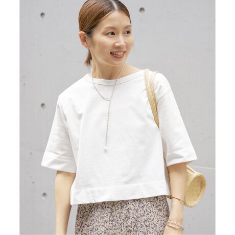 上品さとカジュアル感を兼ね備えた、ミニ裏毛素材の5分袖Tシャツ。