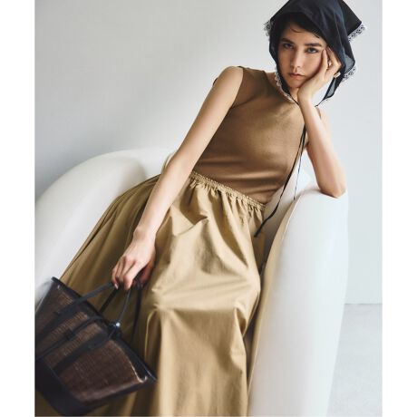 素材感:ニットは柔らかく、ボトムはタフタのような少しのハリ感に柔らかさがあります
