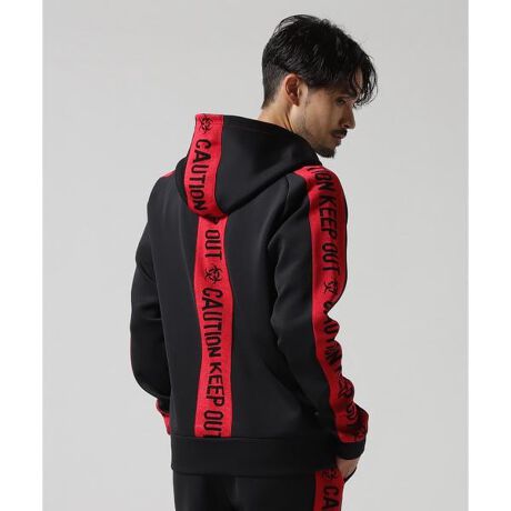 SY32ならではの機能性素材と、beauty・beastお馴染みの「CAUTION KEEPOUT」ロゴテープを両袖やバックスタイルにあしらった新鮮味溢れるデザイン性が目を引きます。