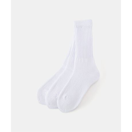 潔い真っ白なソックスは足元のコーディネイトを華やかにしてくれます。特殊な編み方で編まれた靴下は肌にあたる部分が綿100%になる為、ムレにくく快適な履き心地が更に味わえます。フルパイル仕様でクッション性にも優れています。